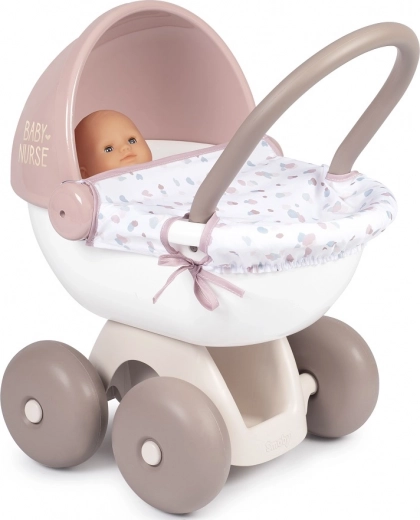 Głęboki wózek dla lalki z serii Baby Nurse zaprojektowany specjalnie dla najmłodszych. Wykonany z wysokiej jakości plastiku, który łatwo się czyści. Materiałowy pokrowiec jest zdejmowany i nadający się do prania. Nadzwyczajnie stabilna konstrukcja, która dzięki czterem kółkom jest bardzo dobrze manewrowalna.