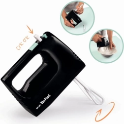 Mini mikser Tefal Express jest idealnym dodatkiem do każdej dziecięcej kuchni. Trzepaczki obracają się mechanicznie za pomocą przycisku i nie wymagają baterii.