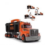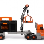Duża ciężarówka 3w1 Black+Decker od francuskiego producenta Smoby przynosi dzieciom mnóstwo zabawy i możliwości rozwojowych. Łączy funkcje pojazdu ciężarowego z odczepianym kufrem na narzędzia i składanym dźwigiem.