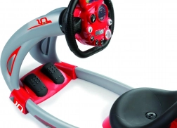 Dziecięcy trenażer wyścigowy V8 Driver zapewnia realistyczne wrażenia z prowadzenia w zaciszu domowym. Dzięki ergonomicznemu siedzeniu z regulacją, płynnym mechanicznym pedałom oraz elektronicznej kierownicy z efektami świetlnymi i dźwiękowymi dzieci spędzą długie godziny na kreatywnej zabawie.