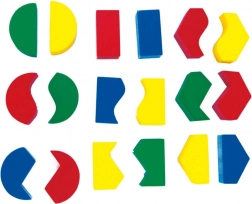 - Łącznie 19 elementów: podstawka + 18 kolorowych kształtów