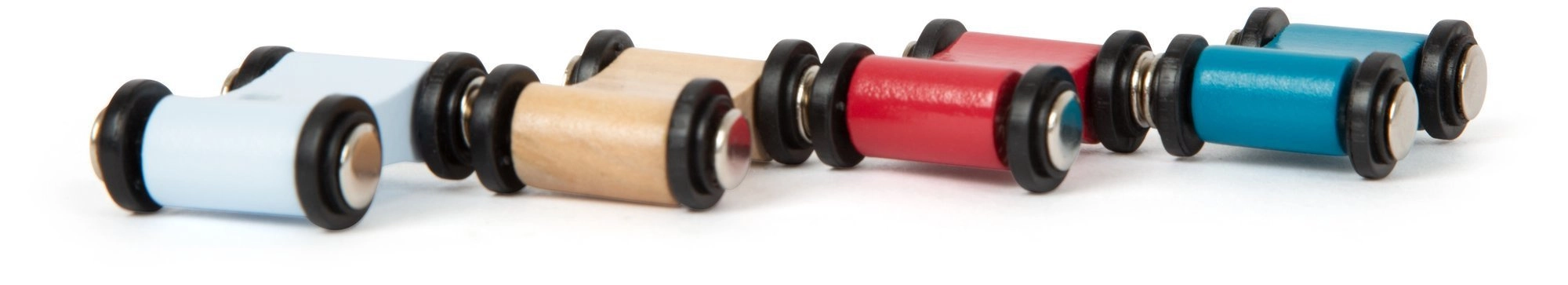 W opakowaniu znajdziesz kompletny tor oraz 4 małe autka w różnych kolorach. Ponadczasowy naturalny wygląd z kolorowymi pasami doskonale wpasuje się w pokój dziecięcy i wesprze koncentrację oraz radość z odkrywania.