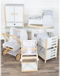 Krzesełko jest częścią serii Little Button, która oferuje jednolity styl projektowania dla różnych akcesoriów dla lalek, umożliwiając stworzenie harmonijnego kącika dziecięcego.