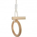Doświadcz godzin zabawy i popraw swoją kondycję fizyczną z tym kombinowanym zawieszonym drążkiem z kółkami gimnastycznymi z solidnego drewna. Idealny dla młodych gimnastyczek i akrobatów.
