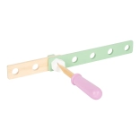 Ten wysokiej jakości drewniany zestaw konstrukcyjny w stylu nordyckim zamieni małych budowniczych w prawdziwych inżynierów. Dzieci za pomocą klucza i śrubokręta samodzielnie złożą różne modele – od pojazdów po proste konstrukcje – a równie łatwo je ponownie rozbiorą. Widoczne usłojenie drewna w połączeniu z pastelowymi kolorami pobudza zmysły i sprawia, że zabawa jest przyjemna i bezpieczna.