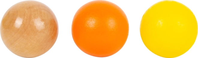 Trzy gładkie drewniane kule w atrakcyjnych kolorach wspierają małą motorykę i bezpieczny chwyt bez ryzyka połknięcia.