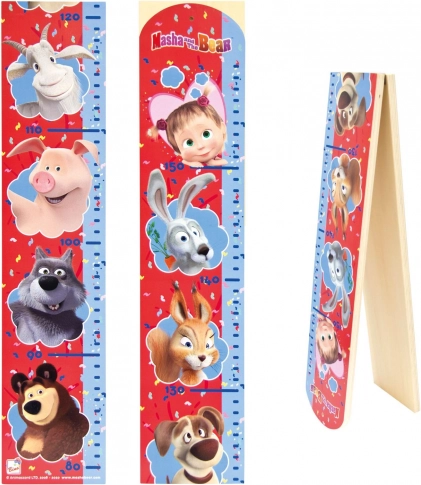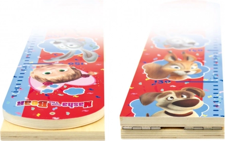 Drewniany (MDF) metr wzrostu z wesołymi ilustracjami z serialu Masza i Niedźwiedź doskonale pasuje do każdego dziecięcego pokoju. Nadrukowana skala pozwala przejrzyście notować wzrost od 80 do 160 cm, tworząc piękną pamiątkę z dzieciństwa.