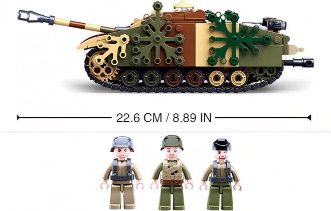 Maskowany opancerzony czołg SLUBAN gwarantuje dzieciom i kolekcjonerom świetną zabawę z budowania i gry. Realistyczne detale, ruchoma wieża z działem i funkcjonalne gąsienice uzupełnione dwiema figurkami tworzą wiarygodną scenę wojskową. Dzięki kompatybilności z innymi klockami rozbudujesz swoją kolekcję i zbudujesz jeszcze większe zestawy bitewne.