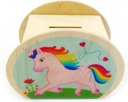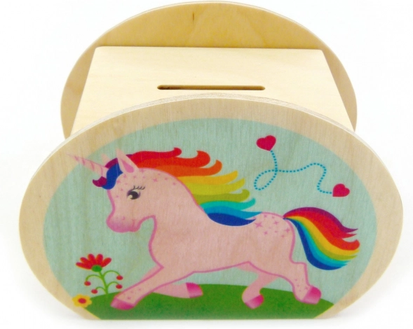 Ta kolorowa skarbonka z jednorożcem motywuje dzieci do finansowej świadomości i nauki wartości pieniędzy. Solidne wykonanie z naturalnego drewna gwarantuje długą żywotność i przyjemny, naturalny wygląd, który pięknie wpasuje się w dziecięcy pokój.