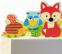 Stylowy dziecięcy wieszak z lustrem z motywem leśnych zwierzątek ozdobi pokój i przedpokój. Oferuje pięć praktycznych haczyków na kurtki i dodatki oraz bezpieczne lustro z niezniszczalnego plexi. Wykonany z odpowiedzialnie pozyskiwanego drewna i wykończony ekologicznymi farbami.