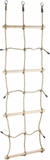 Siatka wspinaczkowa dla dzieci to idealny dodatek do przygód na świeżym powietrzu. Dzięki drewnianym szczebelkom i trzem zawieszonym pierścieniom zapewnia świetną zabawę i bezpieczeństwo na nowoczesnym placu zabaw lub przy domku na drzewie.