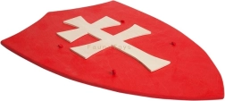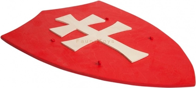 Drewniana tarcza FAUNA z krzyżem dwuramiennym to trwała i bezpieczna pomoc do dziecięcych zabaw w rycerzy. Jest wykonana z wysokiej jakości drewna, starannie szlifowana i ma gładkie krawędzie, aby była przyjemna i bezpieczna dla dziecięcych dłoni podczas użytkowania.