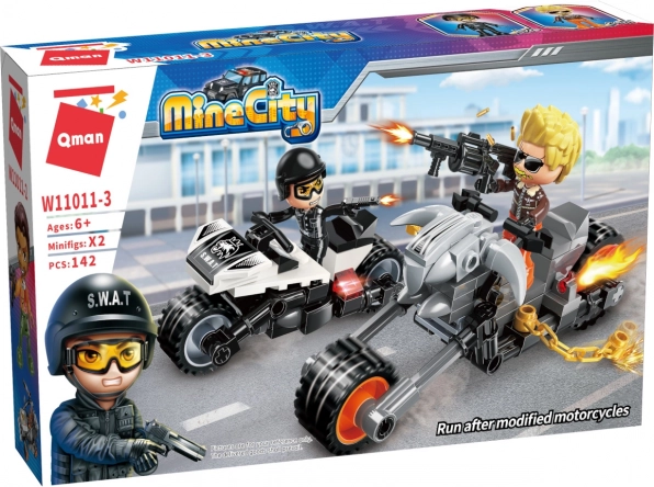 Zestaw konstrukcyjny Qman MineCity pozwala dzieciom tworzyć unikalne motocykle i przeżywać przygody z figurkami. Zestaw zawiera 142 elementy i jest wykonany z wytrzymałego plastiku ABS.