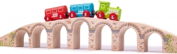 Most BIGJIGS RAIL doda Twojej kolejce imponującej wysokości i długości. Dzięki solidnemu drewnianemu wykonaniu i gładkim złączom pociągi poruszają się płynnie, a pod łukami jest wystarczająco miejsca nawet na wysokie ładunki. Eleganckie zdobienia przypominające kamienne mury nadają zestawowi realistyczny wygląd.