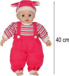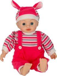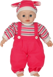 Po naciśnięciu materiałowego brzuszka lalka wydaje 4 realistyczne dźwięki: płacz, śmiech oraz słowa „mama” i „tata”. Zabawa lalką pomaga dzieciom naśladować dorosłych, rozwija umiejętności społeczne, empatię i zdolność wyrażania emocji.