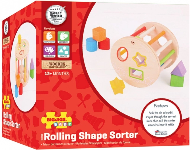 Ten drewniany walec z kształtami to doskonały wybór na pierwszą edukacyjną zabawkę. Kolorowe elementy geometryczne wkłada się w odpowiadające im otwory, dzięki czemu dzieci trenują logiczne myślenie, cierpliwość i precyzję chwytu. Podczas turlania po podłodze zabawka wydaje przyjemne, klapiące dźwięki, które zachęcają do dalszego odkrywania.