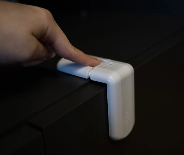 Obsługa jest intuicyjna: dorosły po prostu naciska blokadę w wyznaczonym miejscu i bezpiecznie otwiera drzwiczki, bez konieczności zdejmowania zabezpieczenia. Idealna do kuchni, łazienki i pokoju dziecięcego – wszędzie tam, gdzie trzeba zwiększyć bezpieczeństwo i spokój w domu.