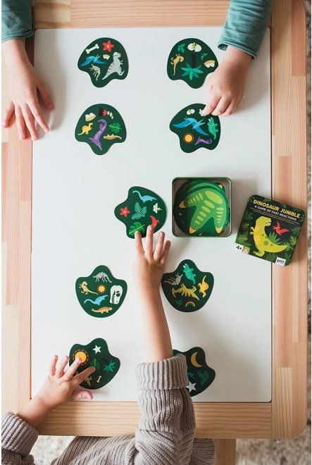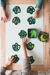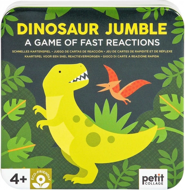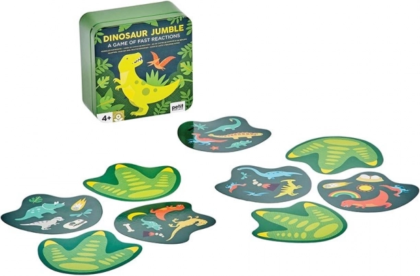 Trenuj spostrzegawczość z dinozaurami. Ta gra karciana oferuje aż pięć wariantów zasad i jest pełna kolorowych ilustracji o tematyce dinozaurów. Z pewnością szybko ją polubisz także za jej kompaktowość — nadaje się do gry w domu i w podróży. Zapakowana w metalowe pudełko bez użycia plastiku. Główne właściwości dla 2–6 graczy 5 wariantów zasad praktyczne opakowanie Instrukcja gry: Wariant podstawowy: Każdemu graczowi rozdaj jedną kartę rewersem do góry. Talię odwróconą awersem do góry umieść pośrodku między graczami. Na umówiony sygnał gracze odwracają swoje karty. Gracz, który jako pierwszy zgłosi identyczny symbol na swojej karcie i na karcie z talii, zabiera kartę z talii. W ten sposób talia zostaje ostatecznie dobrana, a zwycięzcą zostaje gracz z największą liczbą kart. Wariant odwrócony: Rozdaj między graczy karty tak, aby wszyscy trzymali tę samą liczbę kart i jedna karta została. Gracze kładą swoje karty w stosie przed sobą rewersem do góry. Pozostałą kartę, odwróconą awersem do góry, połóż między graczami. Na umówiony sygnał gracze odwracają wierzchnią kartę swojego stosu. Kto pierwszy zgłosi symbol identyczny na swojej karcie i karcie leżącej między graczami, dokłada swoją kartę na powstającą kupkę pośrodku i odwraca kolejną swoją wierzchnią kartę. Gra toczy się tak długo, aż pozostanie ostatni gracz z kartami — zostaje on przegranym. Gracz, który jako pierwszy pozbył się kart, jest zwycięzcą. Wariant grupowy: Gra przebiega rundami. W każdej rundzie przed każdego gracza rozdaje się po jednej karcie rewersem do góry. Na umówiony sygnał gracze odwracają swoje karty, a ten, który nazwie i zgłosi symbol identyczny z symbolem na karcie innego gracza, przekazuje mu swoją kartę. Gra toczy się, aż jeden gracz przyjmie wszystkie karty rozdane w danej rundzie. Celem gry jest pozbywanie się kart, gracz, który w sumie rund przyjął najwięcej kart, przegrywa.