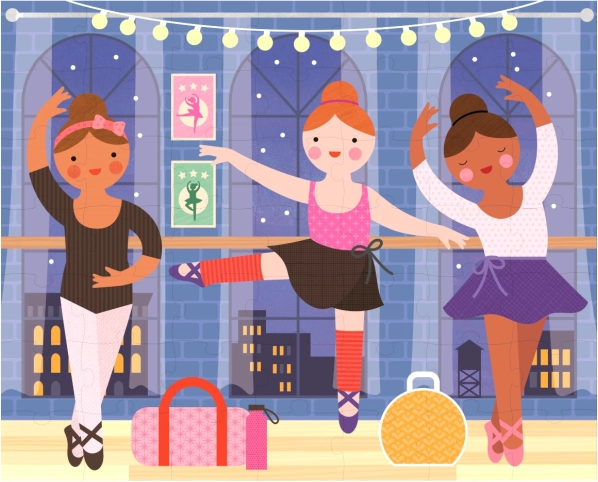 Jedne puzzle, dwie piękne sceny baletowe. Dzieci mogą zmieniać motywy i układać wciąż nowe obrazki.