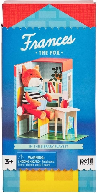 Pluszowy lis Frances od Petit Collage z biblioteką i czytaną po angielsku książeczką. Miękki przyjaciel, scena 3D i świetna zabawa dla dzieci od 3 lat.