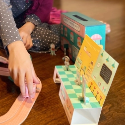 Powstał z myślą o planecie – użyty karton, papier i drewno posiadają certyfikat FSC, a opakowanie jest całkowicie bez plastiku. Zestaw wspiera motorykę małą, wyobraźnię i zabawy w odgrywanie ról u dzieci od 3 lat.