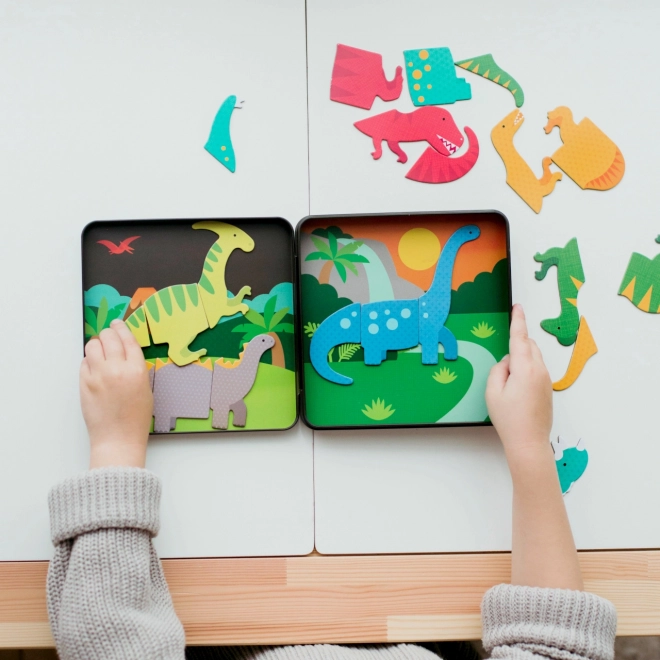 Słyszysz ryk dinozaurów? Z tym magnetycznym zestawem od Petit Collage dzieci stworzą własne prehistoryczne sceny gdziekolwiek – w domu i w podróży. Zestaw zawiera 2 tła oraz 21 magnetycznych elementów, które można dowolnie łączyć i układać w zabawne opowieści. Zabawka jest bez plastiku, zapakowana w metalowe pudełko i idealna dla dzieci od 3 lat.