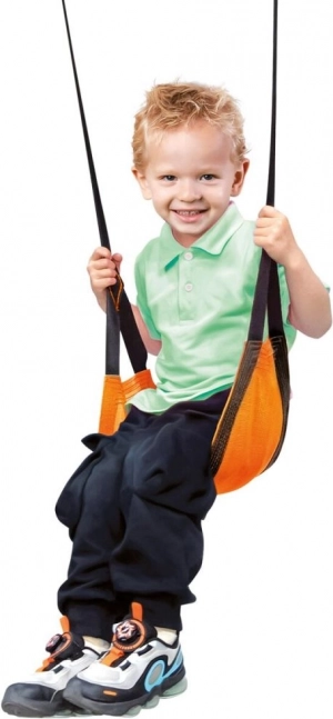 Montaż jest szybki – metalowa klamra umożliwia płynną regulację długości pasków w zależności od wzrostu dziecka lub punktu zawieszenia. Huśtawka to świetne uzupełnienie dziecięcego placu zabaw w domu i na zewnątrz, wspiera rozwój równowagi i motoryki.