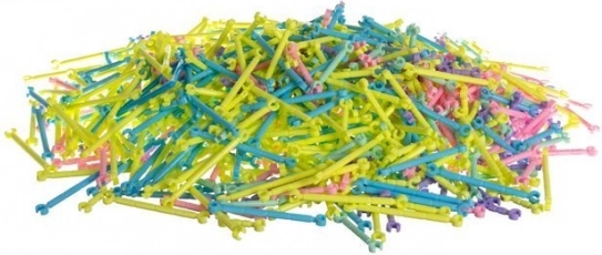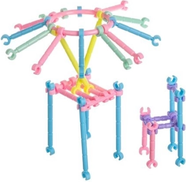 Zawiera aż 1000 różnokolorowych elementów i złączy o różnych kształtach, dzięki którym dzieci mogą tworzyć atrakcyjne przestrzenne konstrukcje bez ryzyka ich złamania lub uszkodzenia.