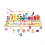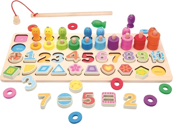 Gra zawiera różne elementy, które dzieci mogą użyć do łowienia, układania liczb lub układania pierścieni. Wszystkie części są zaprojektowane tak, aby małe dziecięce rączki mogły łatwo nimi operować, co wspiera ich samodzielność i kreatywne badanie.