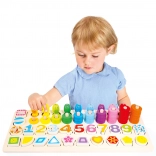 Dzięki kolorowym kształtom i liczbom zabawka wspiera naukę podstaw liczenia i rozpoznawania kształtów.
