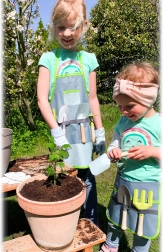 Zestaw przeznaczony jest dla dzieci od 3 lat i świetnie sprawdzi się nie tylko w ogrodzie, ale także jako fartuch kuchenny lub ochrona podczas malowania i prac plastycznych. Całość utrzymana w nowoczesnych kolorach, które podobają się dzieciom, a jednocześnie są łatwe do czyszczenia.