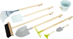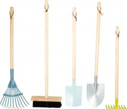 Drewniane trzonki i metalowe części robocze wytrzymają codzienne dziecięce użytkowanie w ogrodzie, na piaskownicy i podwórku.
