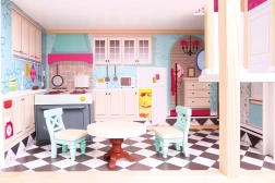 Domek oferuje kuchnię, salon, łazienkę i sypialnię, wszystko w kolorowym wydaniu z realistycznymi dodatkami dla wciągającej zabawy.