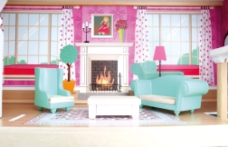 W zestawie znajduje się 13 sztuk stylowych mebli i akcesoriów, które inspirują do twórczego opowiadania historii i rozwijania wyobraźni. Wysokość kondygnacji ok. 20 cm jest dopasowana do standardowych lalek i figurek.