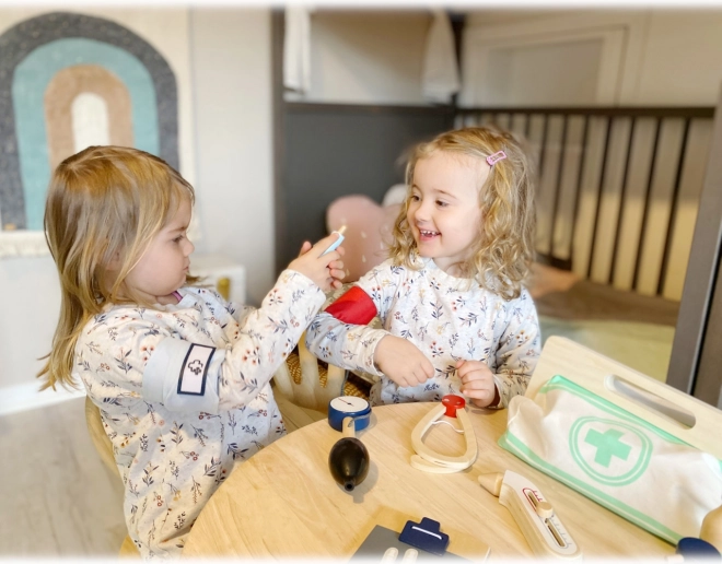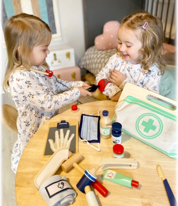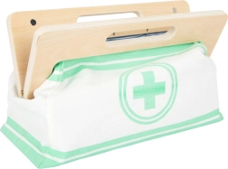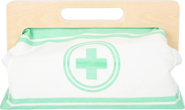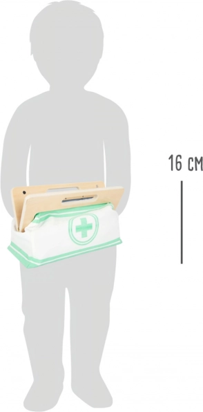 Ta starannie wykonana lekarska zestaw łączy naturalne drewno i wysokiej jakości tkaninę w bezpieczną i zabawną zabawkę dla dzieci od 3 lat. Praktyczna torba z magnetycznym zapięciem trzyma wszystkie narzędzia w jednym miejscu, a dzięki wyraźnemu zielonemu krzyżowi zawsze łatwo ją znaleźć.