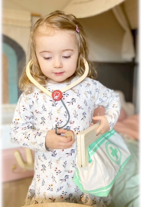 Od stetoskopu, przez termometr z regulowaną temperaturą, po ciśnieniomierz z mankietem i balonikiem – dzieci mają pod ręką wszystko, czego potrzebują do małego badania.