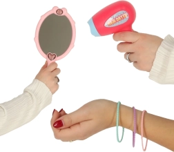 Dziecięca plastikowa suszka i urocze lusterko pobudzają wyobraźnię i nadają zabawie autentyczności – bezpiecznie i bez prawdziwej kosmetyki.