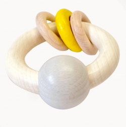 Drewniana grzechotka dla Twojego dziecka pomaga rozwijać pierwsze umiejętności motoryczne i jest idealnym towarzyszem zarówno w domu, jak i w podróży. Wszystkie materiały są odporne na ślinę, co chroni zabawkę przed uszkodzeniem.