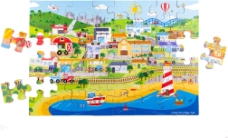 Te puzzle pomagają rozwijać dziecięcą orientację przestrzenną oraz umiejętność rozwiązywania problemów dzięki barwnemu miejskiemu motywowi.