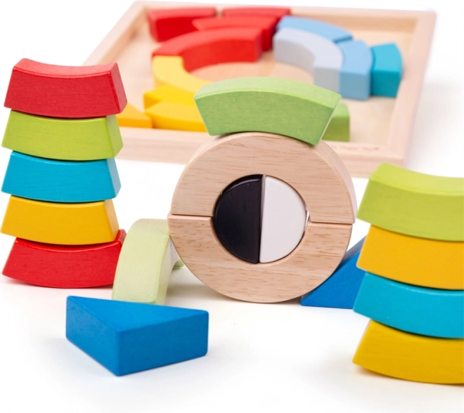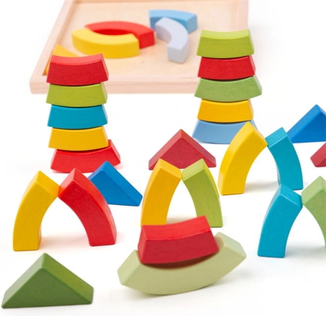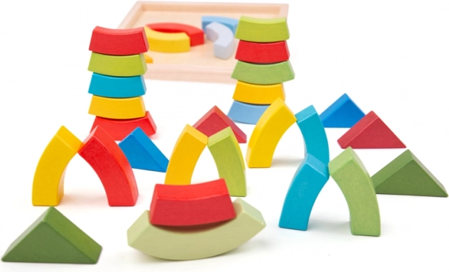 - Drewniane kształty (łuki i trójkąty) z drewnianą podstawą