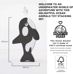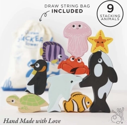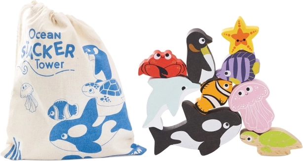 Ta wysokiej jakości drewniana układanka z motywem oceanu zapewnia dzieciom od 18 miesięcy godziny bezpiecznej i twórczej zabawy. Elementy w kształcie wieloryba, delfina, rozgwiazdy, pingwina, żółwia morskiego, meduzy i innych morskich przyjaciół są zaprojektowane tak, aby dobrze leżały w dziecięcej dłoni, wspierając koordynację ręka–oko, cierpliwość i wyobraźnię.
