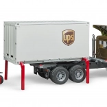 Bruder ciężarówka Mack UPS oferuje wiele funkcji, które symulują prawdziwy pojazd ciężarowy. Dzięki otwieranym drzwiom kabiny i przestrzeni ładunkowej można łatwo manipulować wnętrzem modelu. Zawiera zintegrowany wózek widłowy z regulowaną widlicą do różnych rodzajów ładunków.