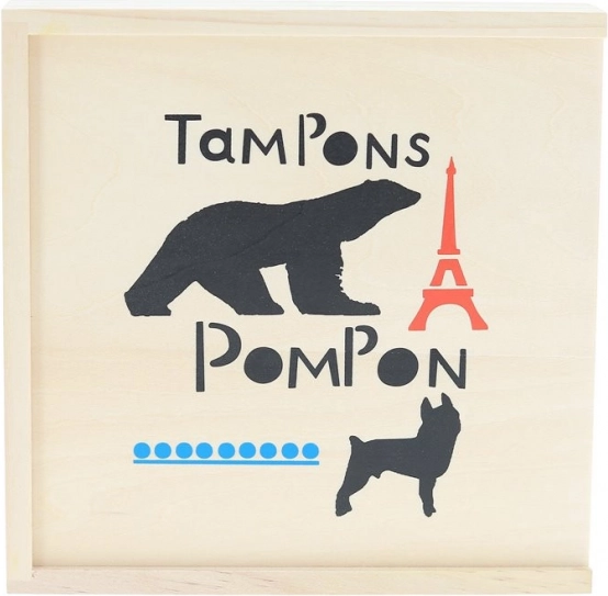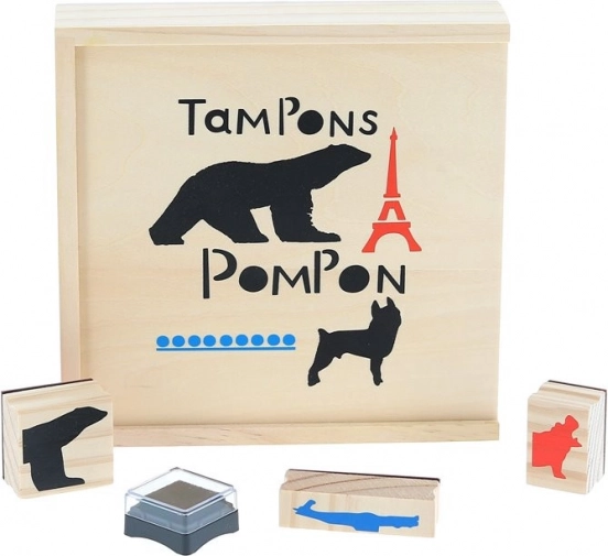Ten designerski zestaw stempli powstał w oparciu o czyste linie rzeźb artysty François Pompona i w reinterpretacji Géralda Lo Monaco oferuje wyjątkowe doświadczenie artystyczne. Dzieci mogą łączyć głowy i tułowie żyrafy, hipopotama, pantery czy niedźwiedzia, tworząc nowe, wyobrażone zwierzęta.