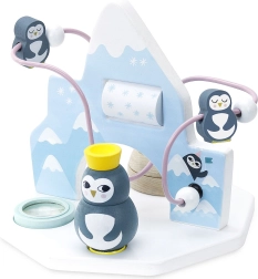 Motoryczny labirynt Wyspa łączy zabawę i naukę dzięki kolorowym pingwinom ślizgającym się w dół labiryntu. Dzieci nie tylko ćwiczą swoje zdolności motoryczne, ale też świetnie się bawią, łącząc ruch i śmiech. Główne cechy tej zabawki obejmują wspieranie kreatywności i logicznego myślenia. Dodatkowo to designerski projekt znanej duńskiej ilustratorki Michelle Carlslund.