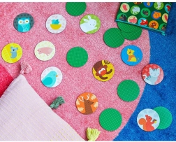 Praktyczna torebka, zdobiona i z zamkiem błyskawicznym, wykonana jest z trwałego poliestru i umożliwia łatwe przenoszenie. Dzieci mogą grać w grę z przyjaciółmi lub rodziną, co czyni pexeso interesującym dla 2 graczy.