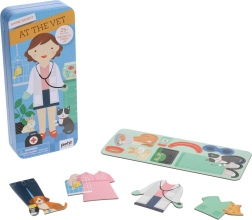 Odkryj fascynujący świat opieki nad zwierzętami z tym kreatywnym zestawem Magnetyczne puzzle Weterynarka Petit Collage. Zestaw zawiera ponad 25 elementów do ubierania i odgrywania ról, co umożliwia nieskończone kombinacje i rozwój wyobraźni.
