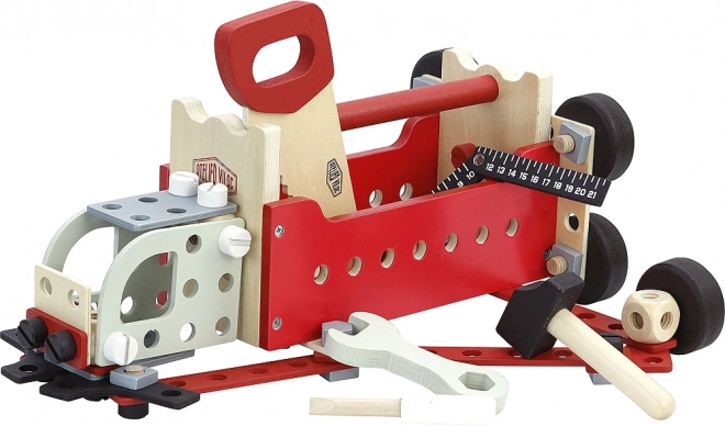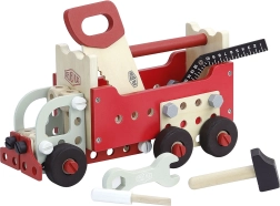 Szukasz zabawki, która będzie rozwijać umiejętności motoryczne i kreatywne myślenie Twojego dziecka? Dwustronna walizka z narzędziami Vilac to właściwy wybór! Ten zestaw zawiera aż 96 elementów, które umożliwiają składanie modularnych konstrukcji, takich jak ciężarówka, żuraw czy nawet robot. Projekt Atelieru Vilac gwarantuje wysoką jakość wykonania i atrakcyjny, vintage’owy wygląd. Dzieci będą mogły wcielić się w rolę małego majsterkowicza i rozświetlić swoje królestwo zabawek.