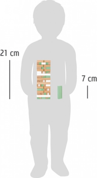 Odkryj nowoczesne ujęcie klasycznej gry w edycji Gold Edition od small foot. Elegancki wygląd ze złotymi detalami, pastelowymi kolorami i naturalnym drewnem skrywa 54 solidne klocki na wiele rund zabawy. W grę można grać z kostką lub bez niej, oferuje różne poziomy trudności i świetnie rozwija małą motorykę oraz koncentrację. Praktyczne opakowanie 2 w 1 służy jako schowek i pomoc przy budowie wieży.