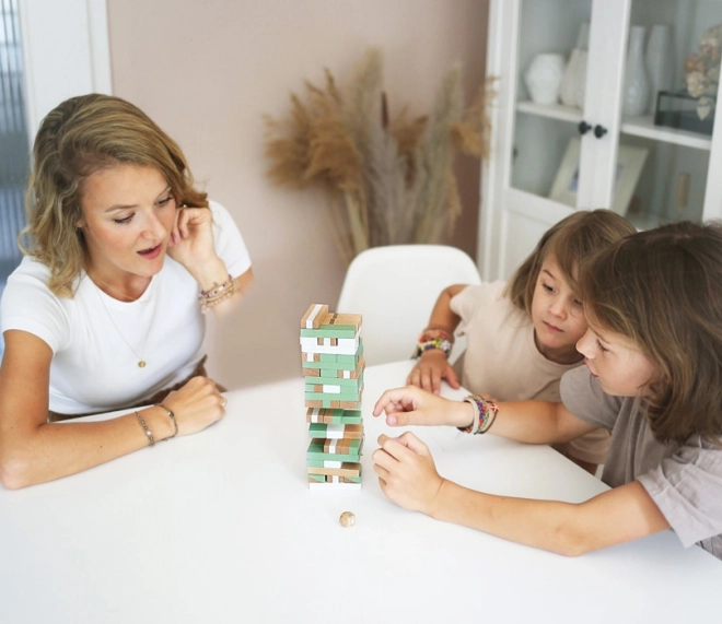 Trendy pastelowe kolory, złote detale i naturalne drewno czynią z tej gry stylowy element, który świetnie wpasuje się w każde wnętrze.