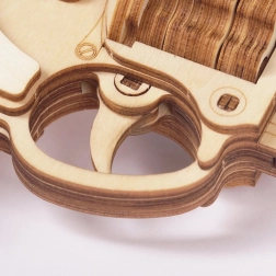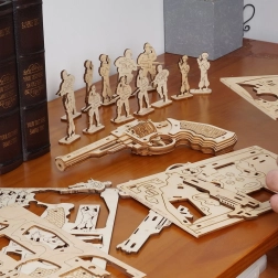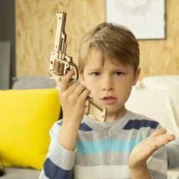 Rewolwer wykonany jest z wysokiej jakości drewna, a jego elementy są precyzyjnie wycięte, co zapewnia doskonałe połączenie podczas montażu.